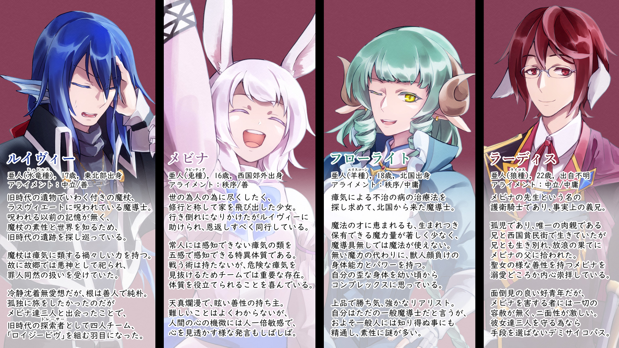 ラーディスとフローライトは成人済みですがルイヴィーとメビナは未成年という扱いです。